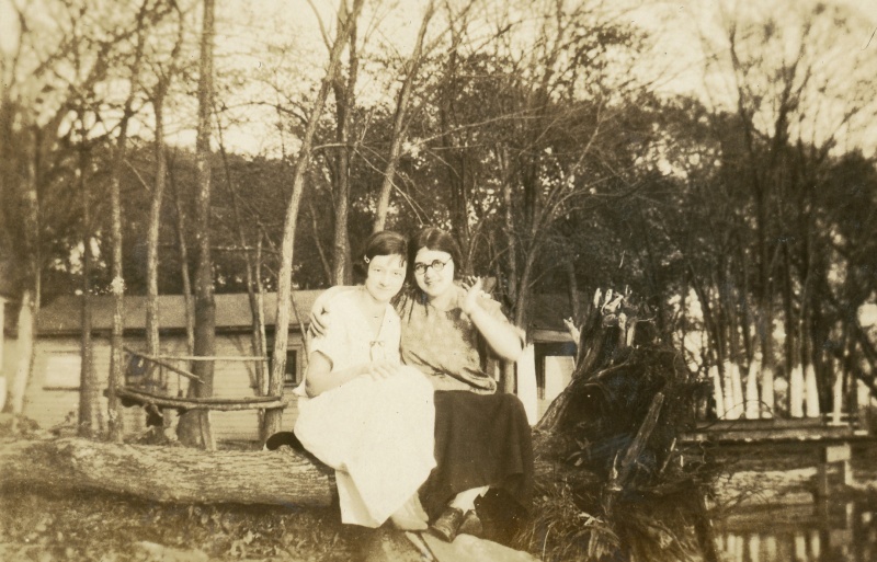 | Mildred Frank's Album: Photo #046 Mildred Frank on the right. Mildred (Frank) Hinks kept an album of photos glued to black construction paper. These photos were later numbered, and some were described by her husband Amos Hinks. These are primarily from the 1920's and 30's. | ||