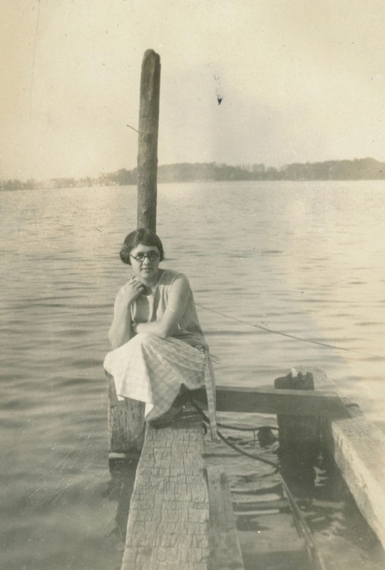 | Mildred Frank's Album: Photo #194 Photo Caption: One of the Happiest Days. Springfield Lake, Oct 26, '24. Mildred (Frank) Hinks kept an album of photos glued to black construction paper. These photos were later numbered, and some were described by her husband Amos Hinks. These are primarily from the 1920's and 30's. | ||