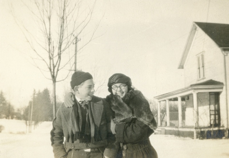 | Mildred Frank's Album: Photo #157 Alton Hinks and Mildred Frank during her visit to Johnstown, PA, about 1925. Mildred (Frank) Hinks kept an album of photos glued to black construction paper. These photos were later numbered, and some were described by her husband Amos Hinks. These are primarily from the 1920's and 30's. | ||