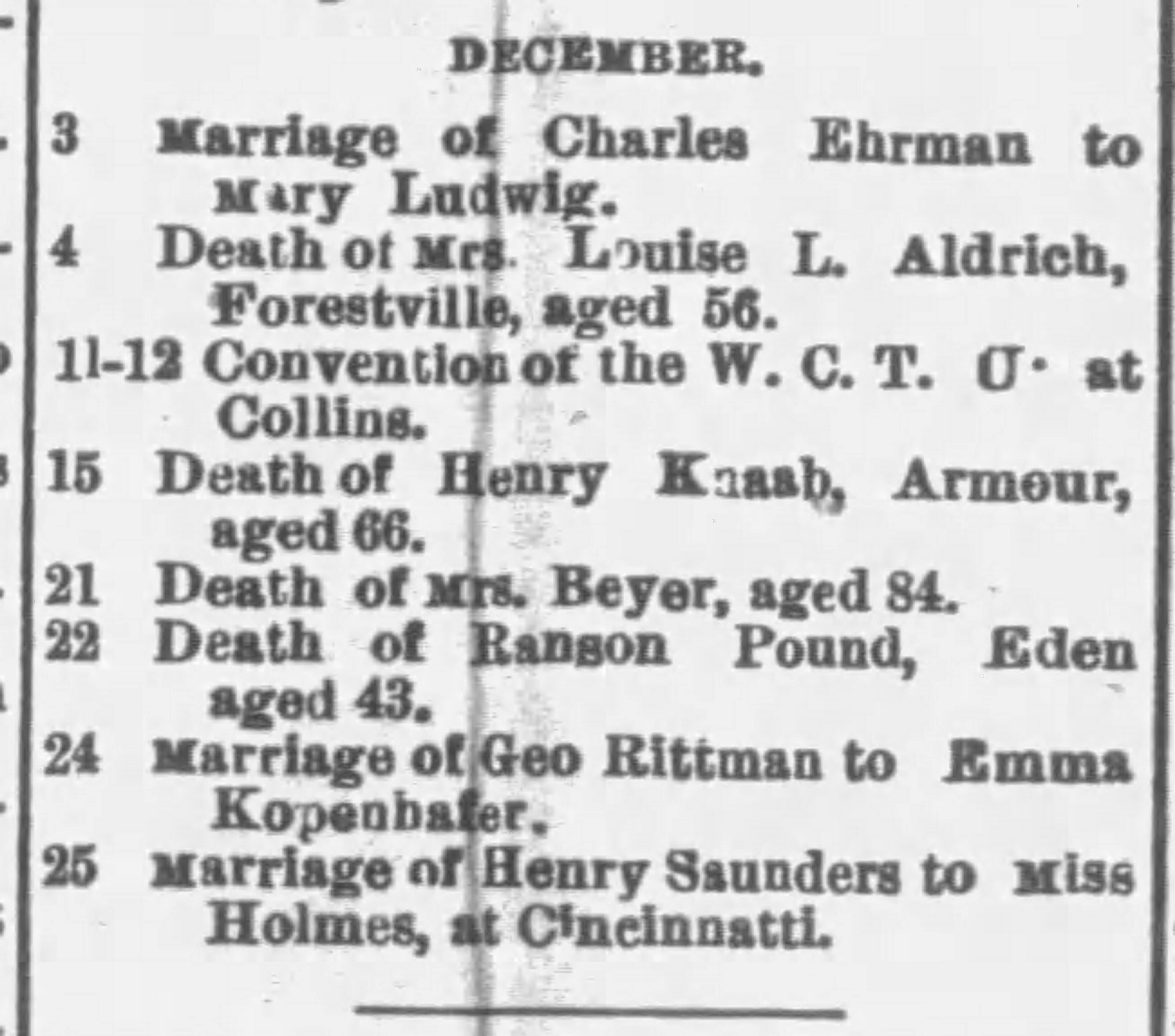 - [S716] Newspapers.com - The Sun and the Erie County Independent - 1 Jan 1892, (Name: The Sun and the Erie County Independent; Location: Hamburg, New York; Date: 1 Jan 1892;), 1 Jan 1892, Page 5.