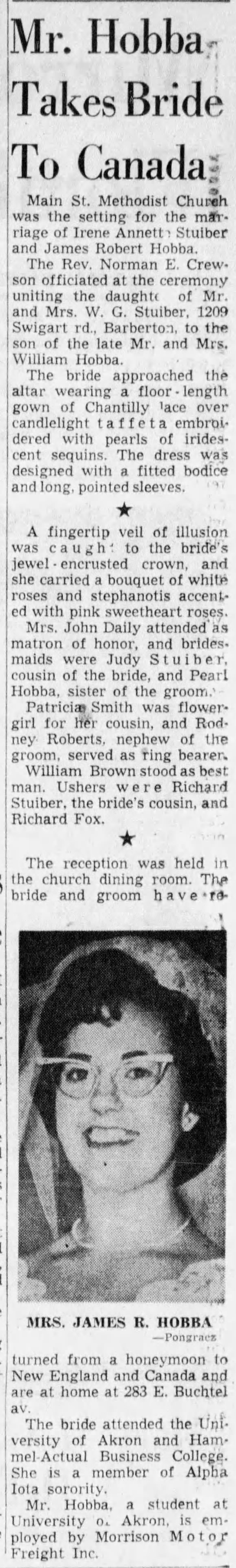 - [S450] Newspapers.com - The Akron Beacon Journal - 28 Jul 1960, (Name: The Akron Beacon Journal; Location: Akron, Ohio; Date: 28 Jul 1960;), 28 Jul 1960, Page 13.