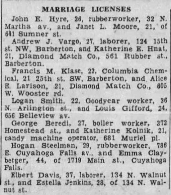 | Divorce | 8 Mar 1930 | Akron, Summit, Ohio, USA [22] |